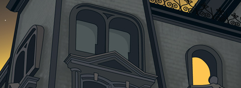 The graphic design business has picked up again– here i am suddenly working on about seven or eight projects at once, after the dearth of projects that was known as January. It goes this way. Additionally I have been working on a redesign and restructuring of electrofork.com, which is nearly ready to be launched, so look for a message in your inbox– soon. (The slices of building above and below constitute something of a sneak peak… that light in the window signifies me, working away into the night…)