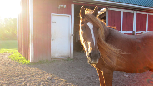 Some photos of Red from my trip Upstate to the Farm. He’s getting up there– 28 years of age; still the master of the herd. He’s lost many of his back (chewing) teeth, which has resulted in his subsisting largely on mash, though he still spends a lot of time grinding away at green grass– but his jaw has lost some of its muscle. Still a handsome devil, though, and still feisty. More images after the jump–