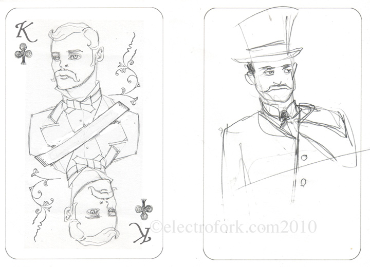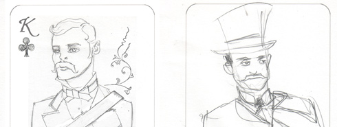 Kingly tests… Posted on Saturday,10 July, 2010Saturday,10 July, 2010 by edaggarart King test sketches… OH! I forgot– I haven’t yet made manifest the plan. Well, the plan is a Cabinet Card Portrait-inspired deck of cards. Yep. So it begins… Share Click to share on X (Opens in new window) X Click to share on Pinterest (Opens in new window) Pinterest More Click to share on Facebook (Opens in new window) Facebook Click to email a link to a friend (Opens in new window) Email Click to share on Tumblr (Opens in new window) Tumblr Click to share on Pocket (Opens in new window) Pocket Like Loading... Related