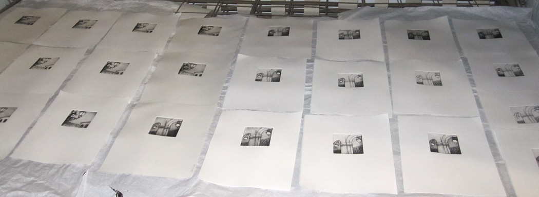 Two new prints yesterday. I worked at a less frenzied, more enjoyable pace this time, so fewer prints, but better overall quality I think. I really enjoyed the process of wiping the ink this time- even more meticulous, despite these being much smaller plates (2.5″ square each). Some samples after the jump.