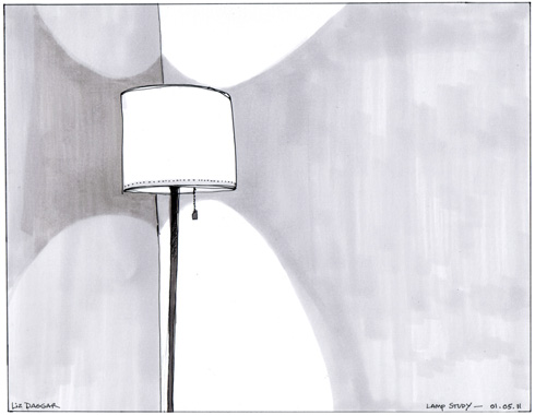 First study: lamp in simple. Ink and marker on #234 bleedproof paper for pens