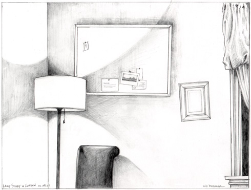 Second study: lamp with chair, wall and window. Graphite on #234 bleedproof paper for pens