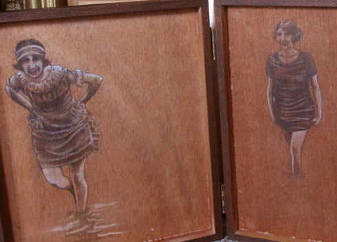 Cigar box wood is very porous, incredibly thirsty! (It’s cheap- very different to the lovely old hardwood of the drawer I used on the previous piece.) Even with a very linseed-heavy glaze, the paint barely moved. So mid way through the first panel, I used a rag to saturate the entire surface with oil, and that helped a bit. I did the same on the right-hand panel before even starting with the paint. I have another of these boxes, so my next experiment will be to put apply thin coats of clear gesso•, then sand, and repeat. This will hopefully result in a better ground for both the graphite and the oil glazes– to fill in some of the pores, but maintain a semi-absorbent, smooth surface.