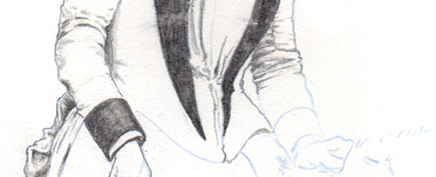 So, after creating my little registration-key, I rolled-up my plate with soft ground wax and began drawing away– click on the image above to see full image. Alas, after getting this far (everything in real pencil was what I worked onto the plate- the blue pencil was just my basic reference lines), I looked at the plate beneath and noticed different levels of sheen on the ground. I showed it to my instructor, and learned, alas, I’d put the ground on far too thin and it was no good. So I basically wiped it all off and must start at the beginning again next time I go in.