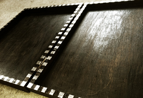 The cigar box’s resulting border, its leaf having been painted over at intervals.