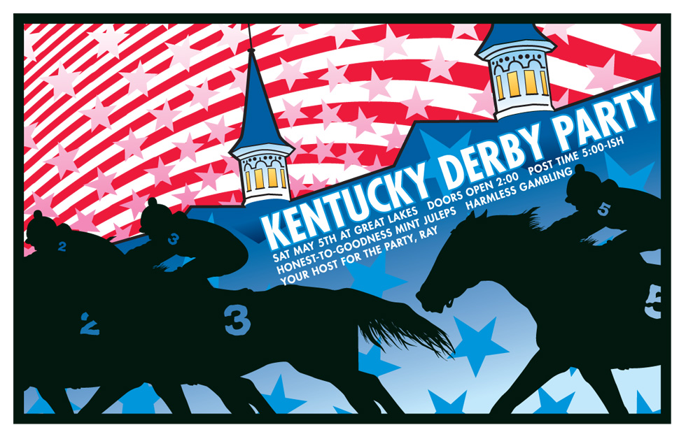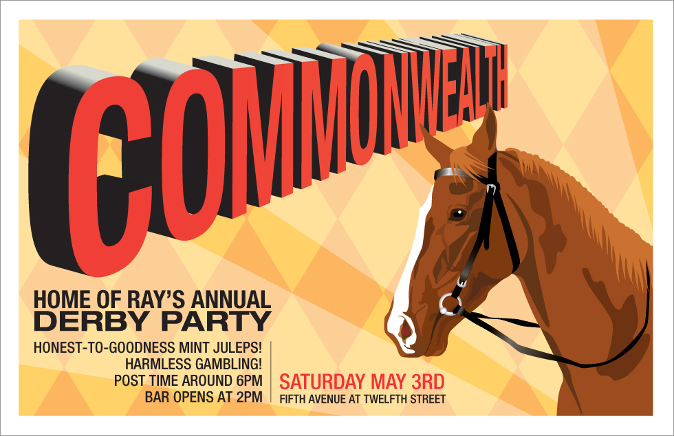 This one’s a design thing more than an art thing, but it’s kinda’ fun. This was inspired by a vintage postcard that Ray had, particularly the 3D typography. Vector-based illustration and design, to be printed on 17″x11″ paper to advertise the party that needs no advertising at Commonwealth. Honest-to-Goodness Mint Juleps!