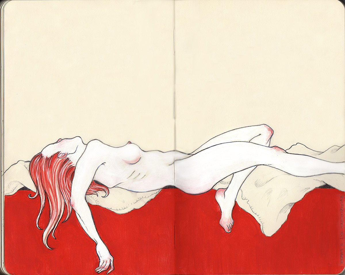 (the drawing: graphite, ink and casein in Moleskine sketchbook)
