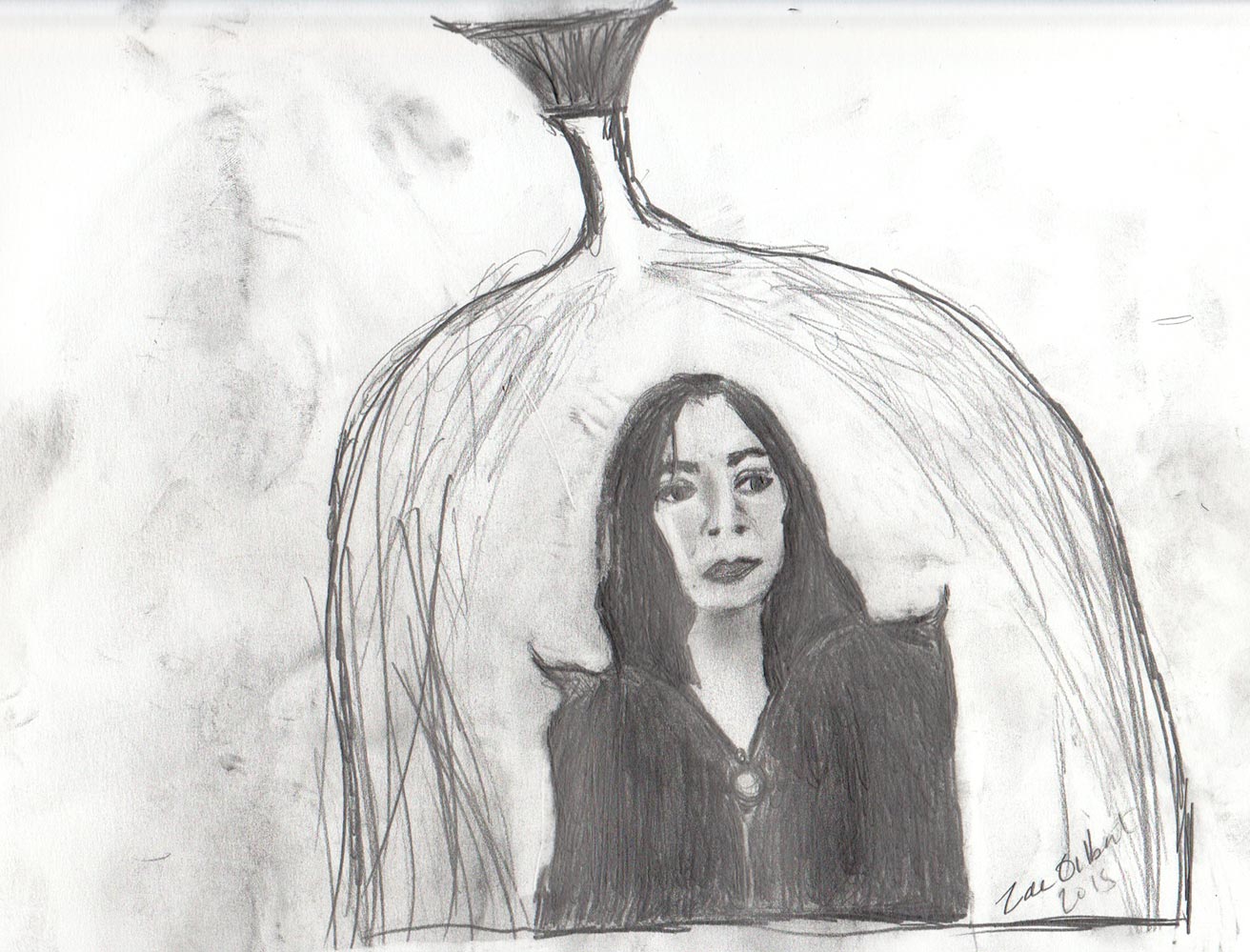 And below is a drawing of me that Zac did from a photo he’d taken of me when we were in Paris, except he’s put me in a bell jar— a convention he told me he regrets now, but I don’t mind it.