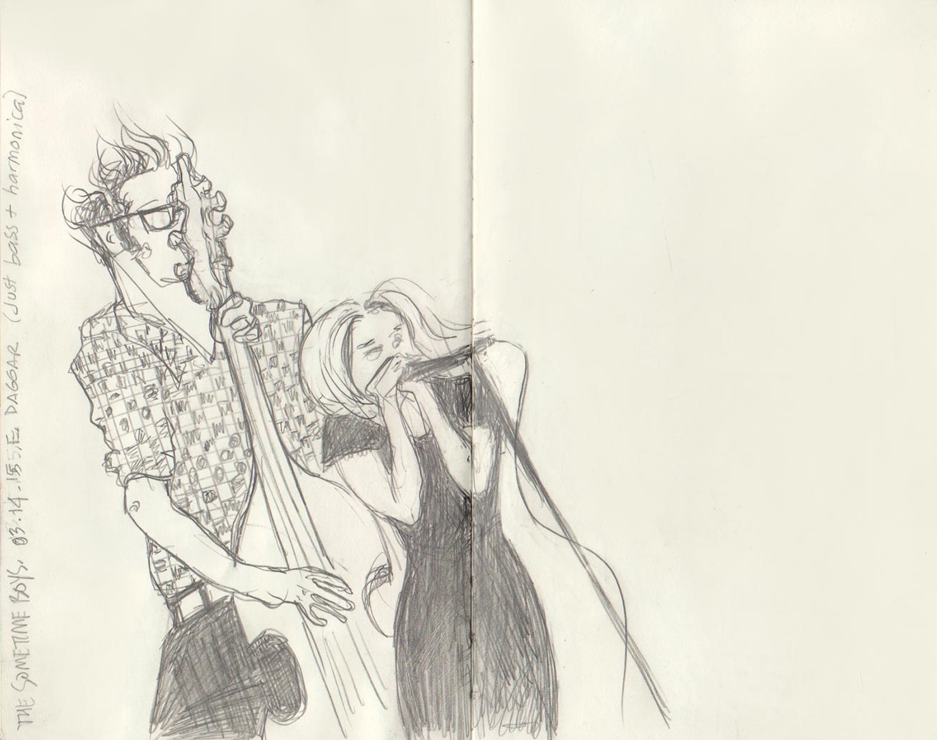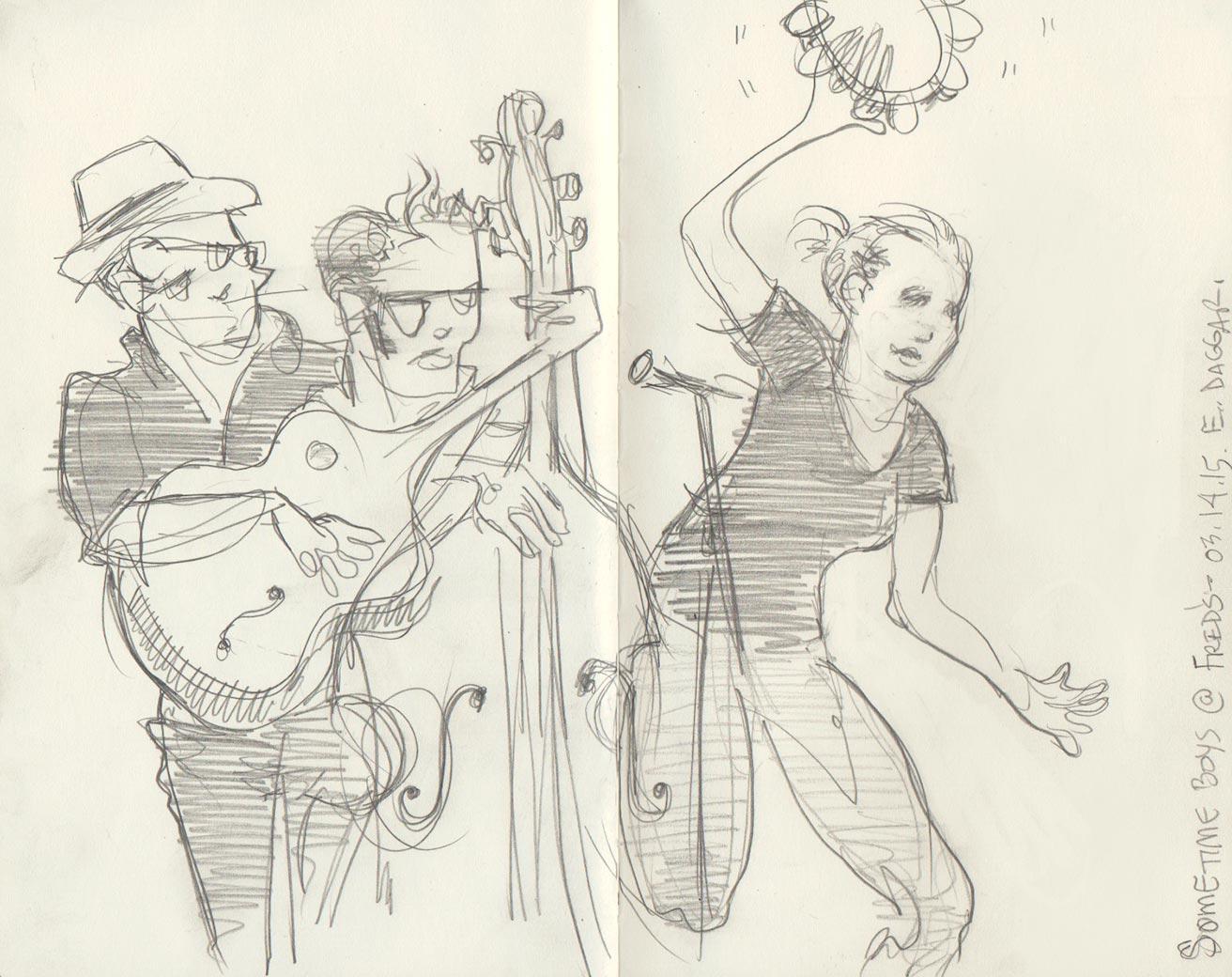 The Sometime Boys played at Freddy’s Bar & Backroom last night. I did some sketches during their set.