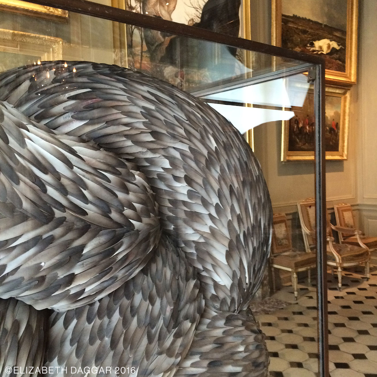 Here is a really interesting, slightly unsettling sculpture by another contemporary artist (didn’t get the name) that resembled a giant snake so knotted into itself it has neither head nor tail, covered entirely in feathers. The feathers were all numbered.