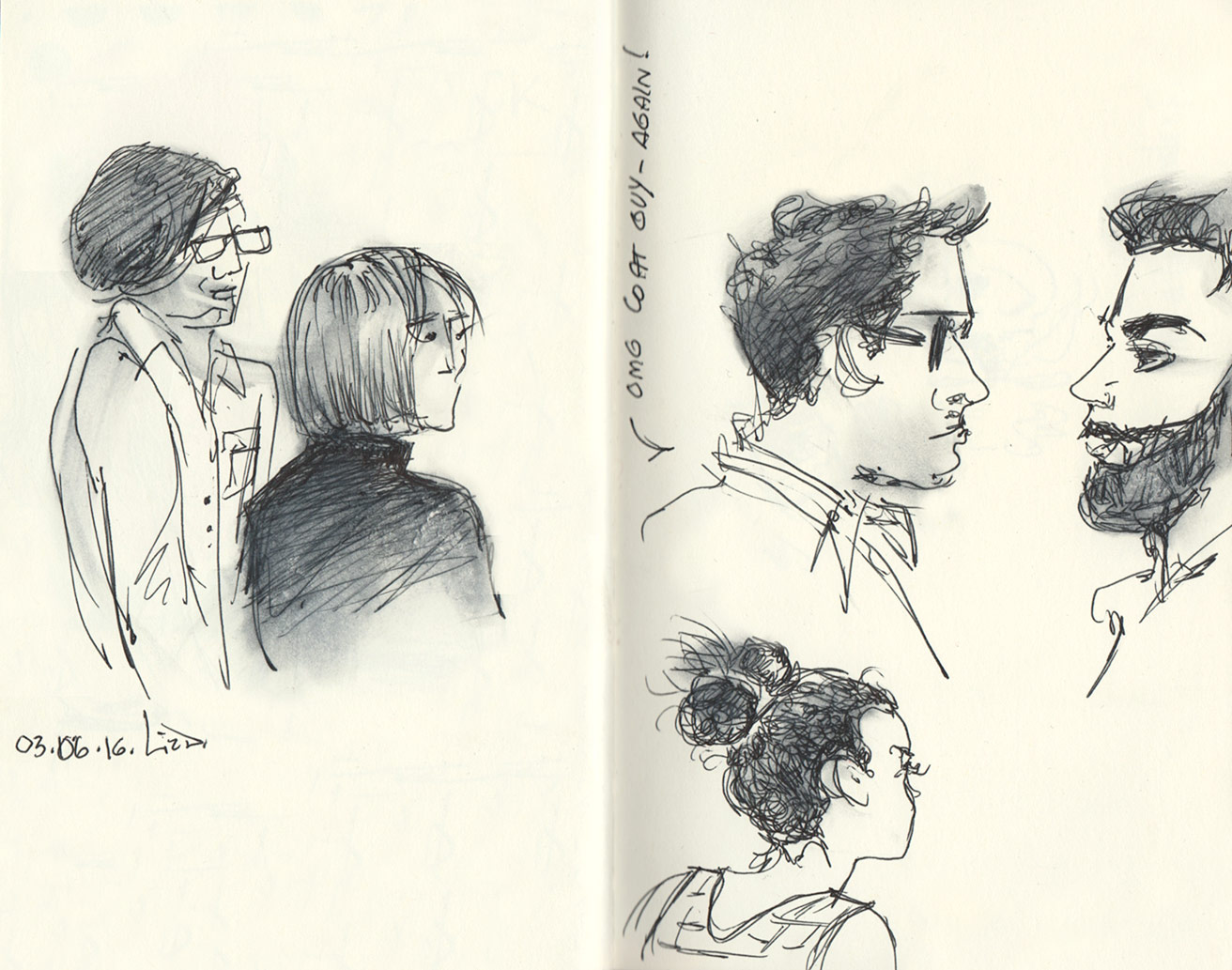 Saturday night I left the house without my phone and was okay with it, fuck it. I did some observational sketches while we were out. Maybe I’ll leave the pocket computer more frequently for the sake of my sketchbook.