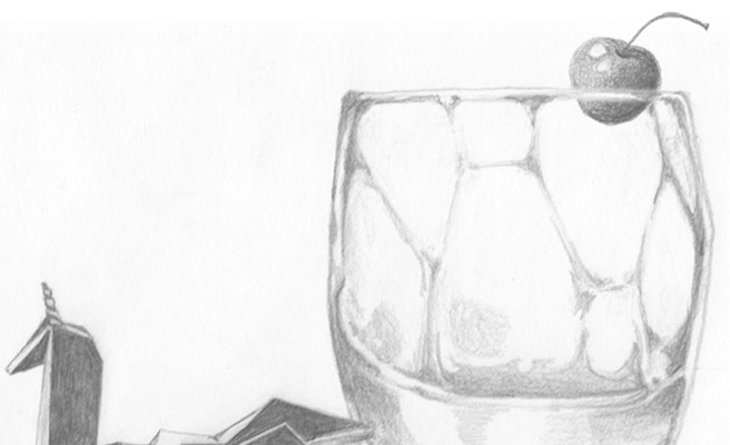 Here are sneak peek slices of the two illustrations. They are nearly finished (add ice to the drinks, refine shading of stripes), but the book is not, so the final reveals will be some months from now, maybe longer. That’s all I can say.