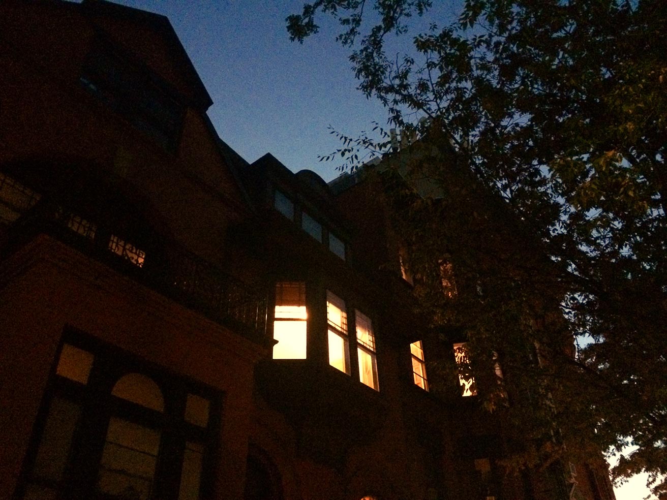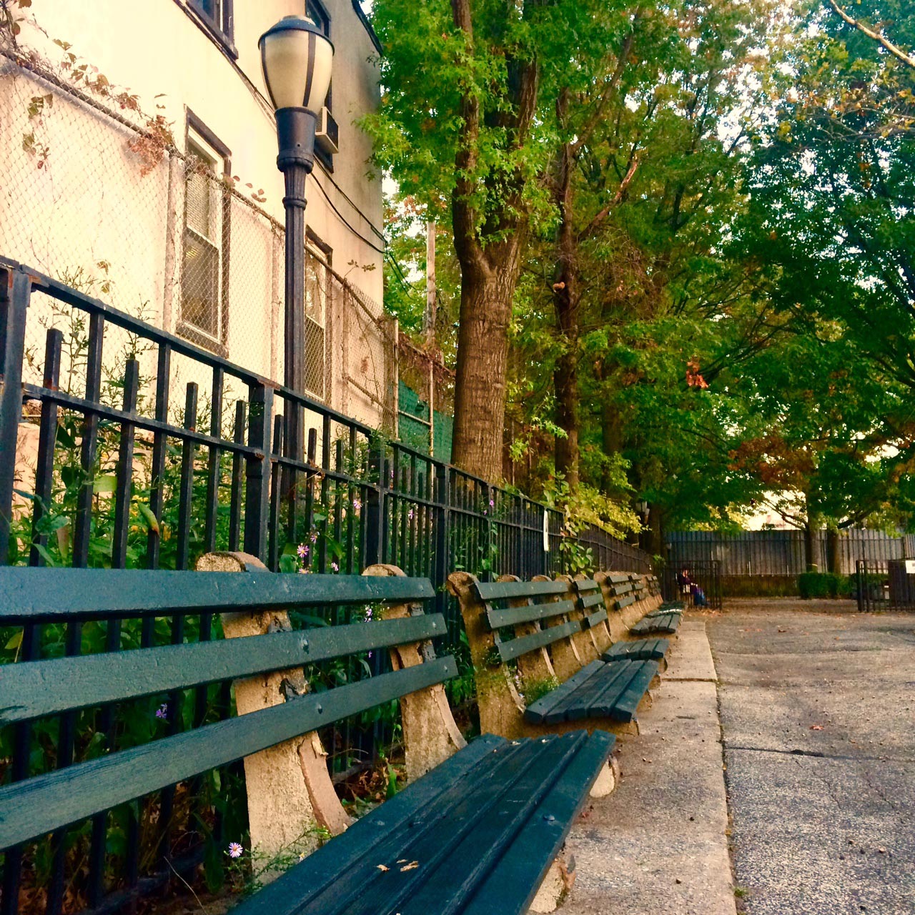 Magic hour in Park SlopeSouth Park Slope mini park 18th StreetNice color blocking, SoSlo!A fine, high-ceilinged parlor in a North Slope brownstone— and proper, not hiding behind curtains or blinds!Wonderful details on this stone-carved entryway, North Slope