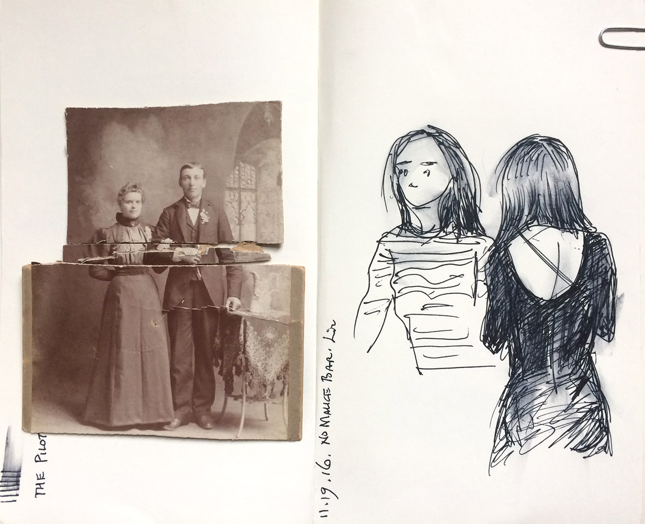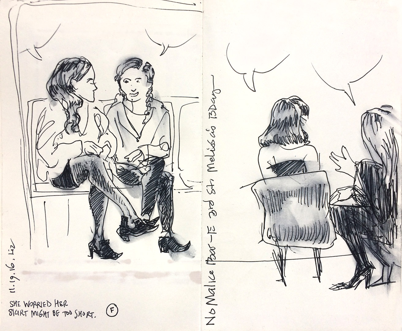 I rendered some observations in the Moleskine. Realized too late that I’d only two blank pages left in it; had to retrace steps to the start of the book to find a third. (The filling of this book snuck up on me, despite or because of it being long in the tooth— I started it in June.)