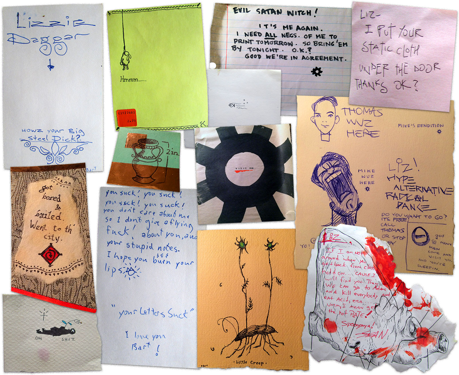 When I was in college my friends and I didn’t have our own phones, so we’d put sheets of paper on our doors for people to leave notes on. Inevitably some of them became elaborate volleys back-and-forth; sometimes we made random shit just for fun, or to say Hi to stick on each other’s doors.