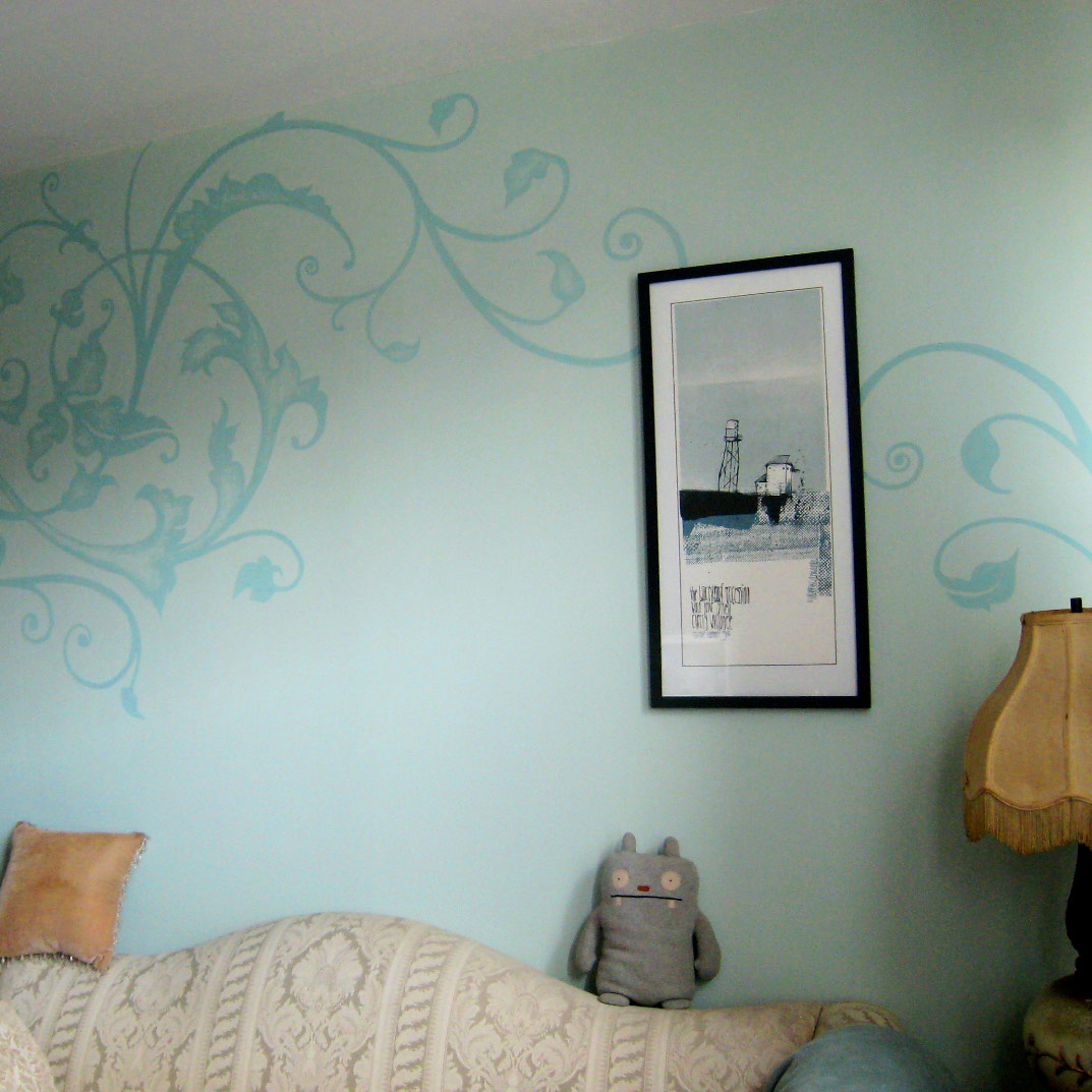 I’ve been thinking about painting a patterned accent wall in the work-lounge (living room) of my apartment, so I’ve been looking through pictures of what I’ve done in other places.