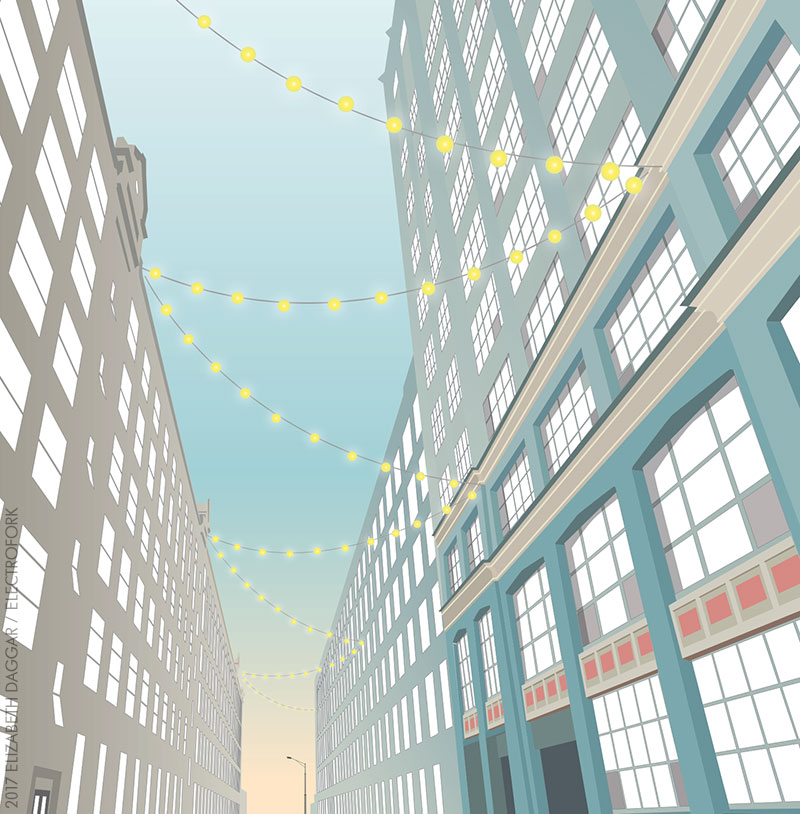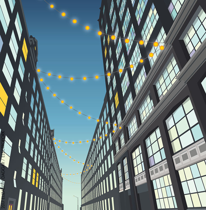 I’d like to work more intricately with the window panes of them— maybe create some animations. Imagine the panes being even more kaleidoscopic, color-wise, and all shimmering and shifting— a transition from day to night, showing the change in the sky and the windows, as the lights wink on.