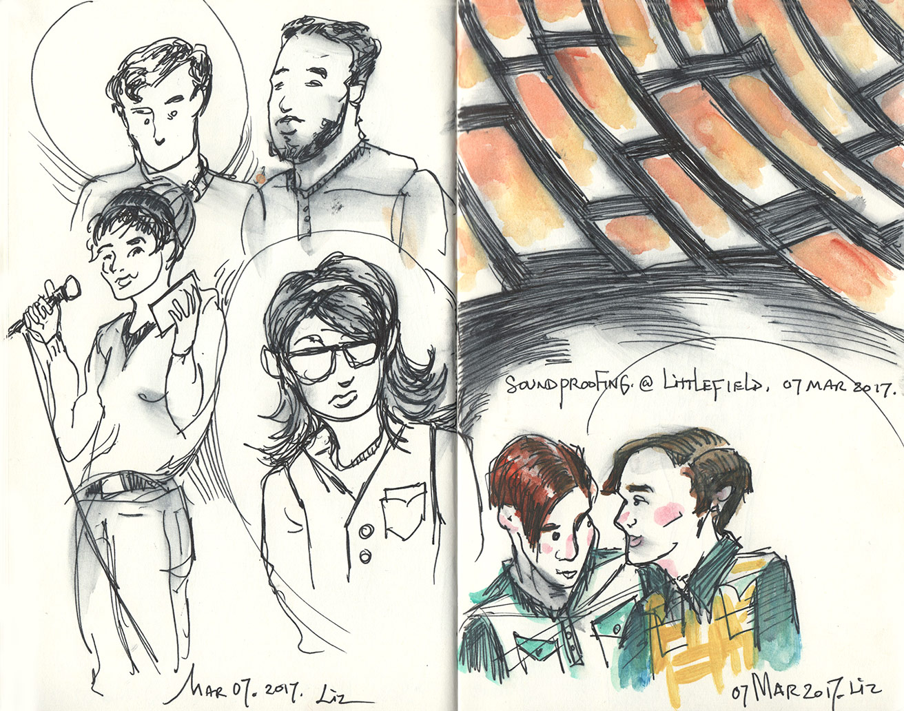Though we were far back and without the best viewpoint, it was a great environment for fast-paced sketching. (I added some watercolor later at home.)