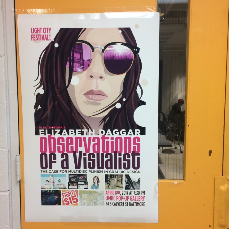 It’s disconcerting to run into an oversized facsimile of my own stylized face in the halls of the university. Giving my talk on Saturday evening. Super nervous! But looking forward to it, and seeing the illuminations of Light City around the Inner Harbor.