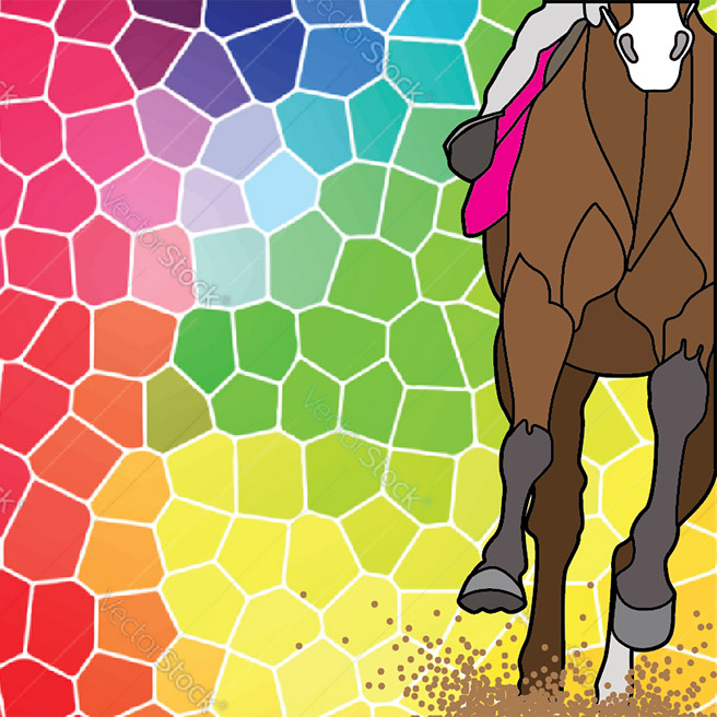 I’ve been working on some ideas for the 2017 Derby Party poster for Commonwealth Bar here in Brooklyn; one idea being a faux stained glass approach. Above is the spare beginning of a design in progress. Below is the same design, incorporating a stock image as a placeholder to decide whether I wanted to pursue the idea before continuing work on it.