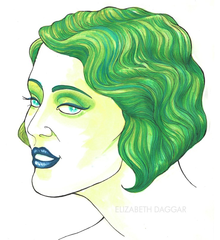 Below is the third of my HAIR Lines studies, which I painted in honor of tomorrow’s Mermaid Parade in Coney Island. The flapper comes alive in seaweed greens.