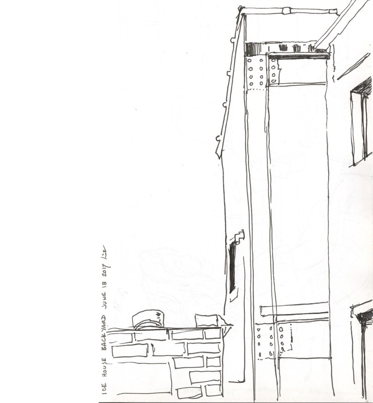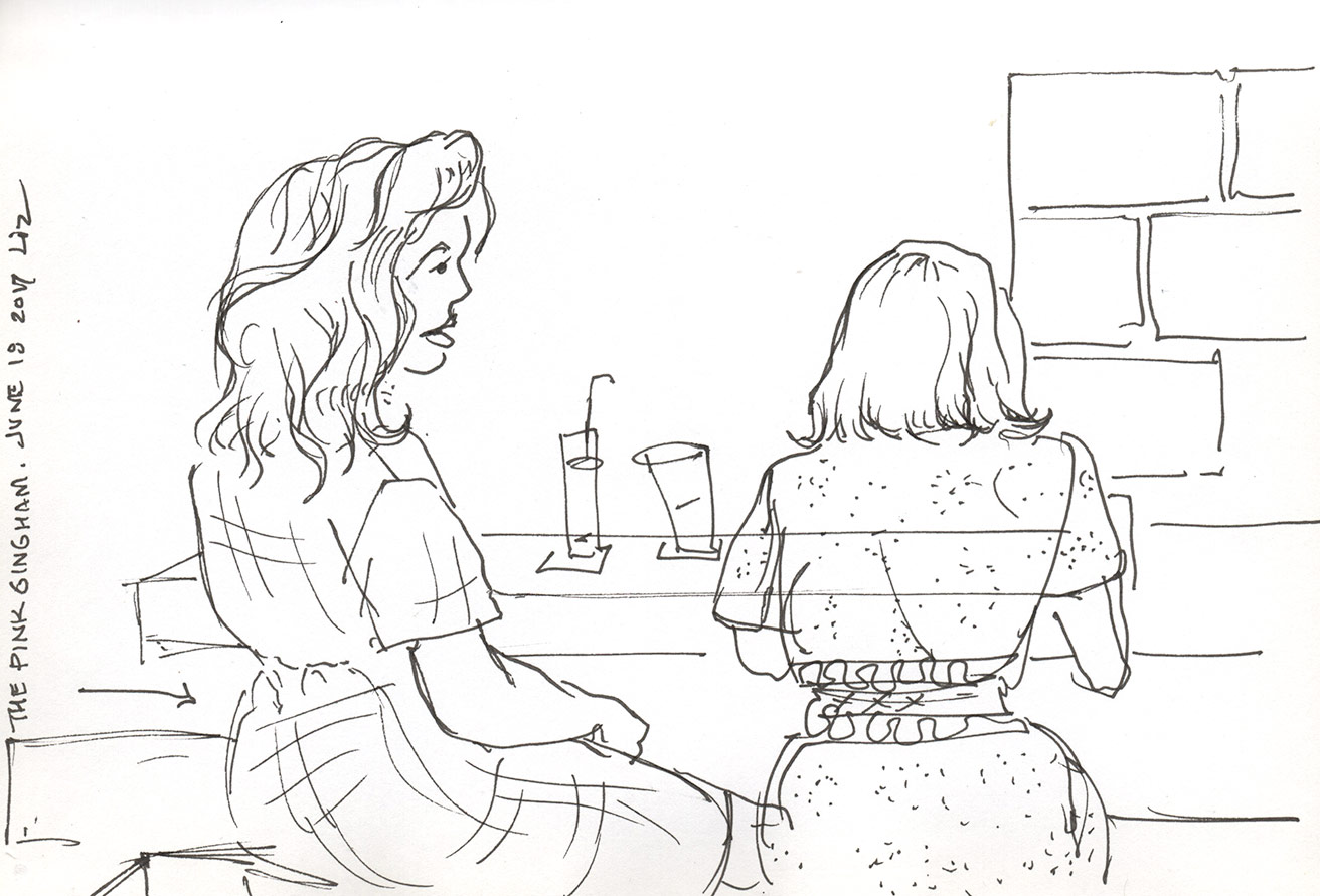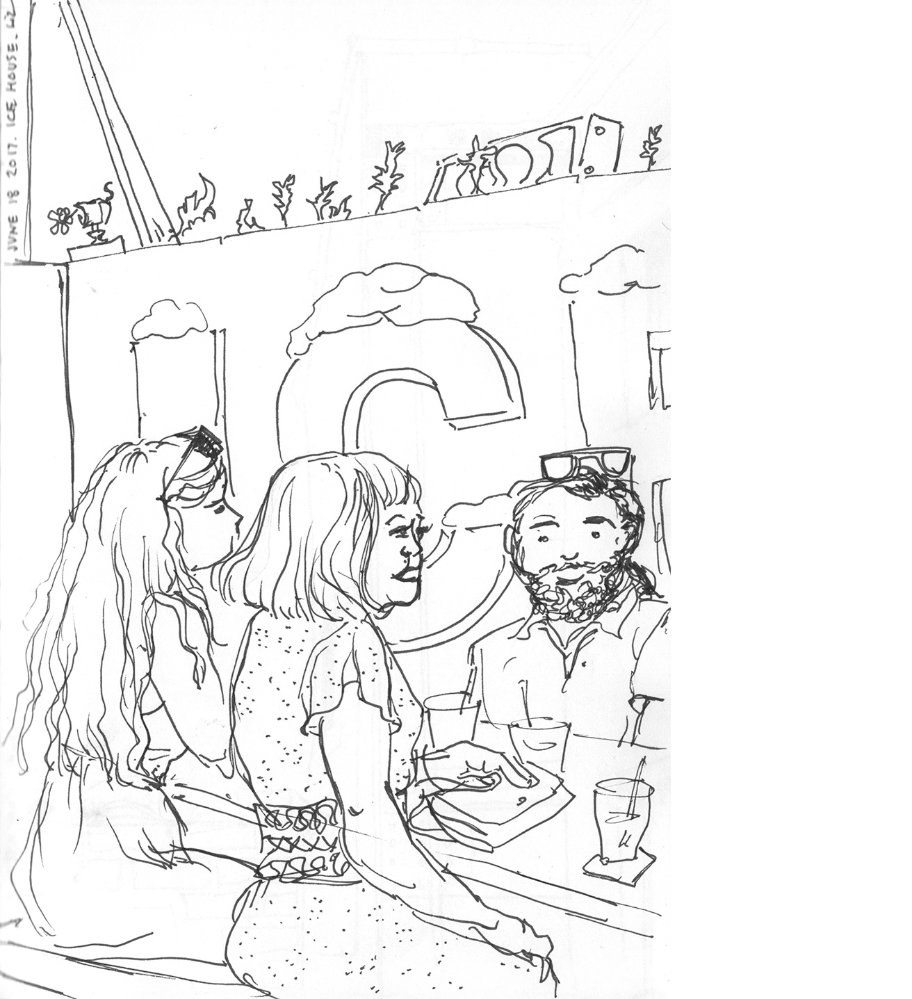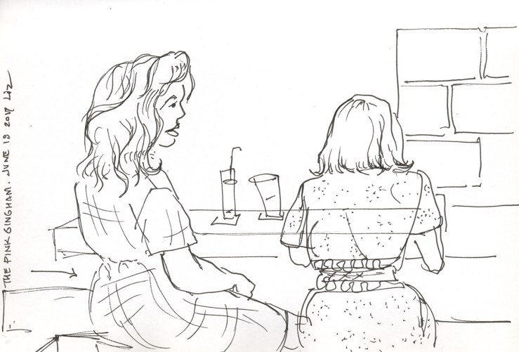 As I mentioned in yesterday’s post, I went to the Ice House in Red Hook after stopping in at Bait & Tackle. There are always lots of people to observe and sketch on a fine day in the backyard there.