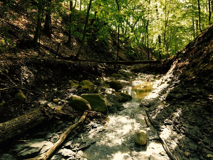 Up the hill and across the road from their slice of waterfront is a shale-lined ravine that torrents in heavy rains, bringing a fresh slough of sedimentary shards after every storm down to the edgewater. We spent fair amount of time skipping stones across the shallows, bare feet in the cool water.