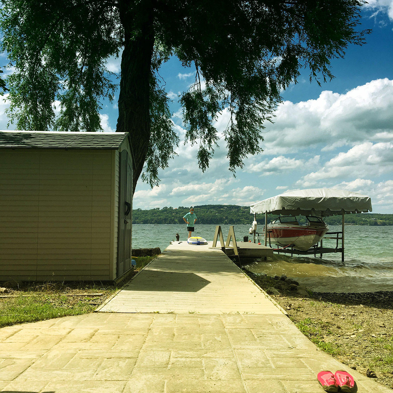 Yesterday was the first day since I arrived upstate that it broke sunny instead of clouds attended by rain. It was welcome timing, as we’d long planned a day on Canandaigua Lake where my middle brother and his family have a new lake house. It was breezy and sunny with a brilliant sky and the water was pleasant for swimming. (Some of these photos were filtered through the Nik collection.)
