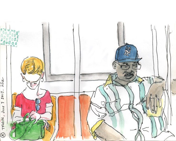 Anyway, some of these needed some color; some needed tightening up. I just haven’t had time to assess and scan. Here are a few done over the past few days on various trains between Brooklyn and Manhattan.