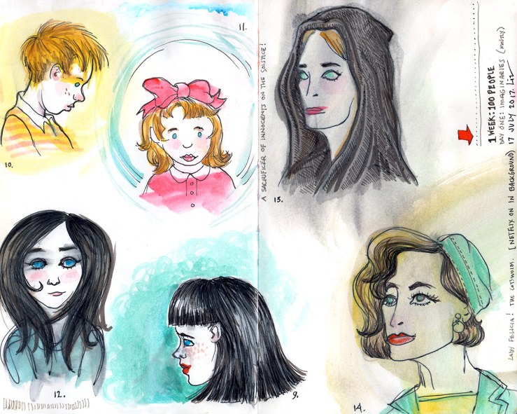 Anyway, I did fourteen drawings of people last evening. These are mostly imaginaries, not from life (although a couple were ones I glimpsed on Netflix, on in the background). I’ll be in the park this evening, so there will be loads of people to observe and draw there, too.