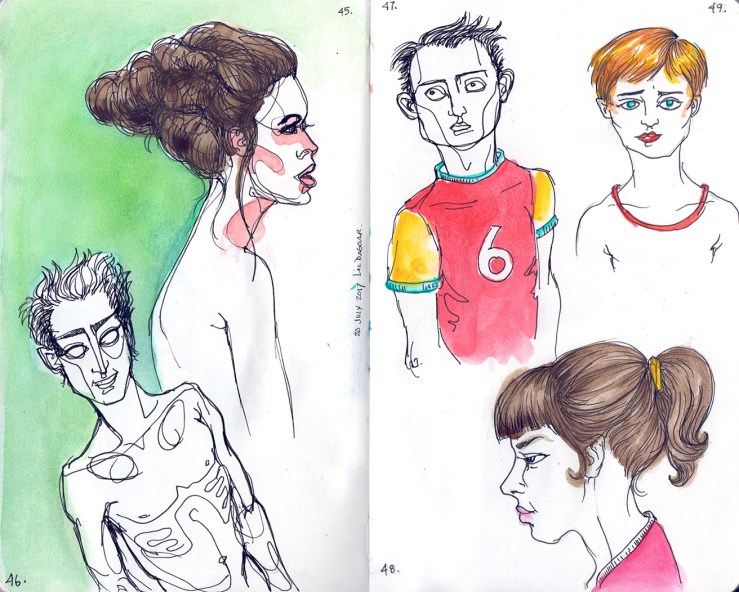 So, I’m only at 58, which means I must aim to draw 42 more today and tomorrow! I’ll try. This is quite a challenge, especially as I’ve been getting a bit precious about some of these, spending a fair amount if time. It’s a good challenge. I’ll be circling round again tomorrow and Monday to tally it all up.