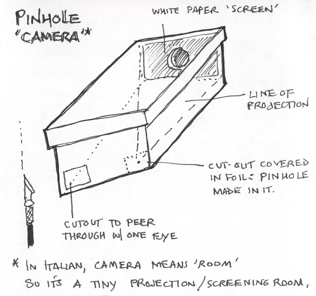 I’m curious to see the surroundings as well as looking into the pinhole projector; curious about the effect of altered midday light in that brief window of time.