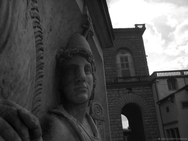 He was long ago sealed into to the wall— made part of the wall— with a spell. All the years since, visitors and passersby have presumed he’s just another sculptural embellishment of the palazzo. His consciousness remains, though— eyes, frozen, he still sees; his ears still hear.