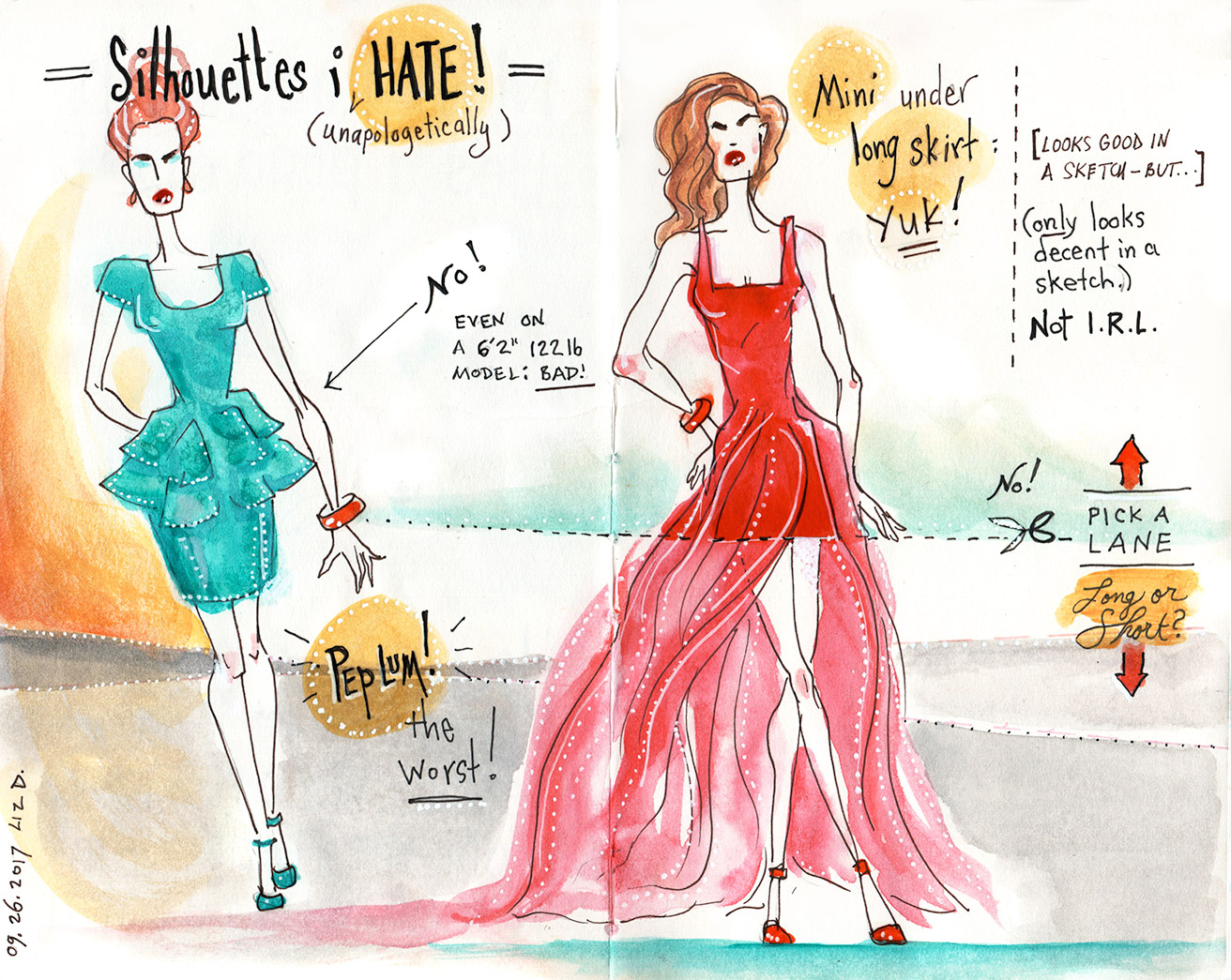 "Silhouettes I Hate" sketch on fashion
