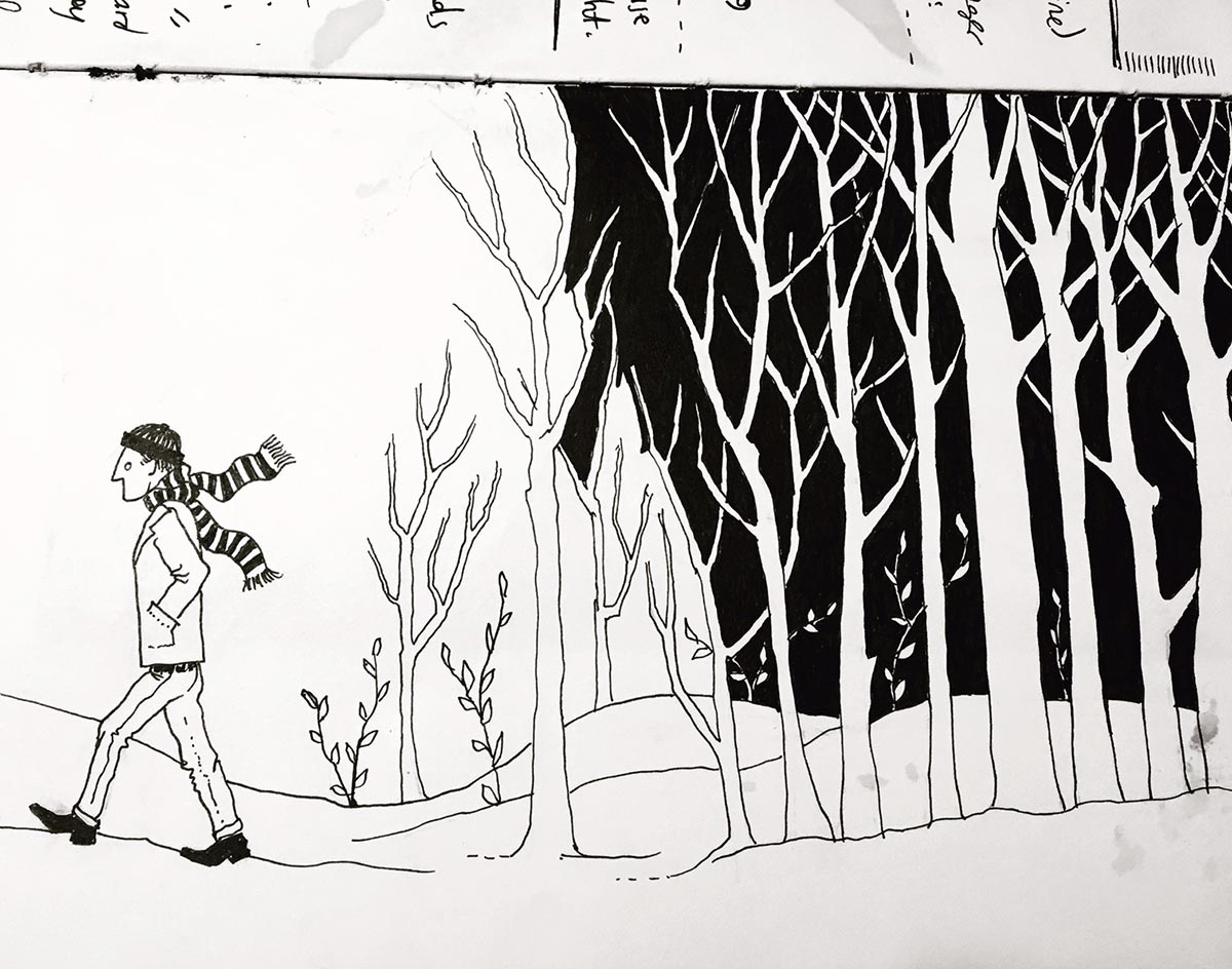 I loved the use of negative space. Is that done using ink wash or filled with fineliners?