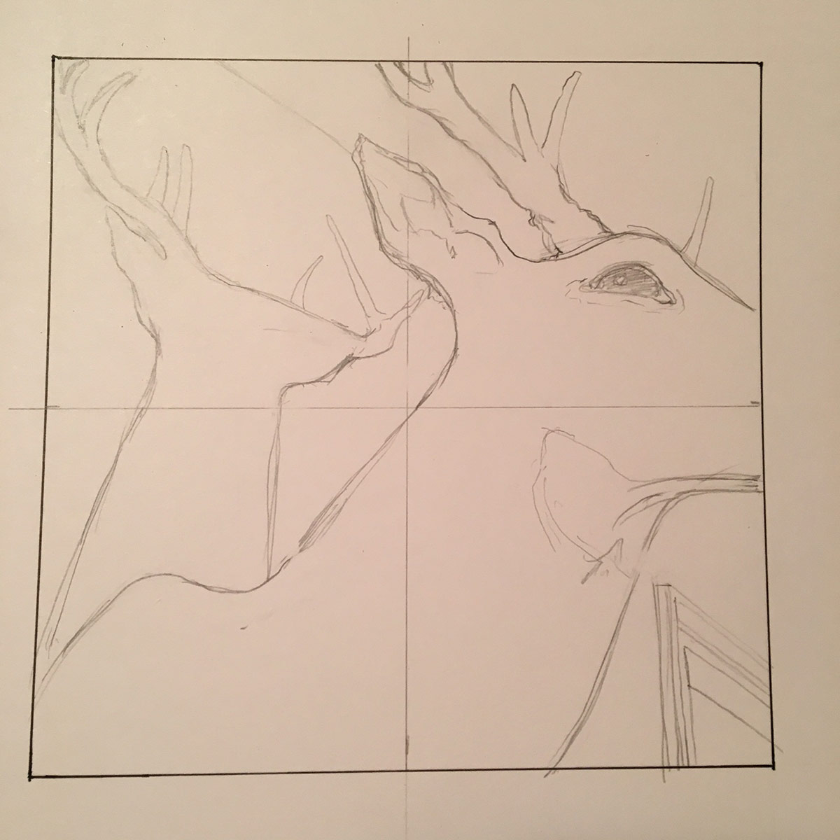 drawing process photoThis began with a photo my friend Zac had just posted to instagram at the time I posted the small rack of antlers drawing; he told me to check it out, that it may inspire another drawing. Which it did, obviously.