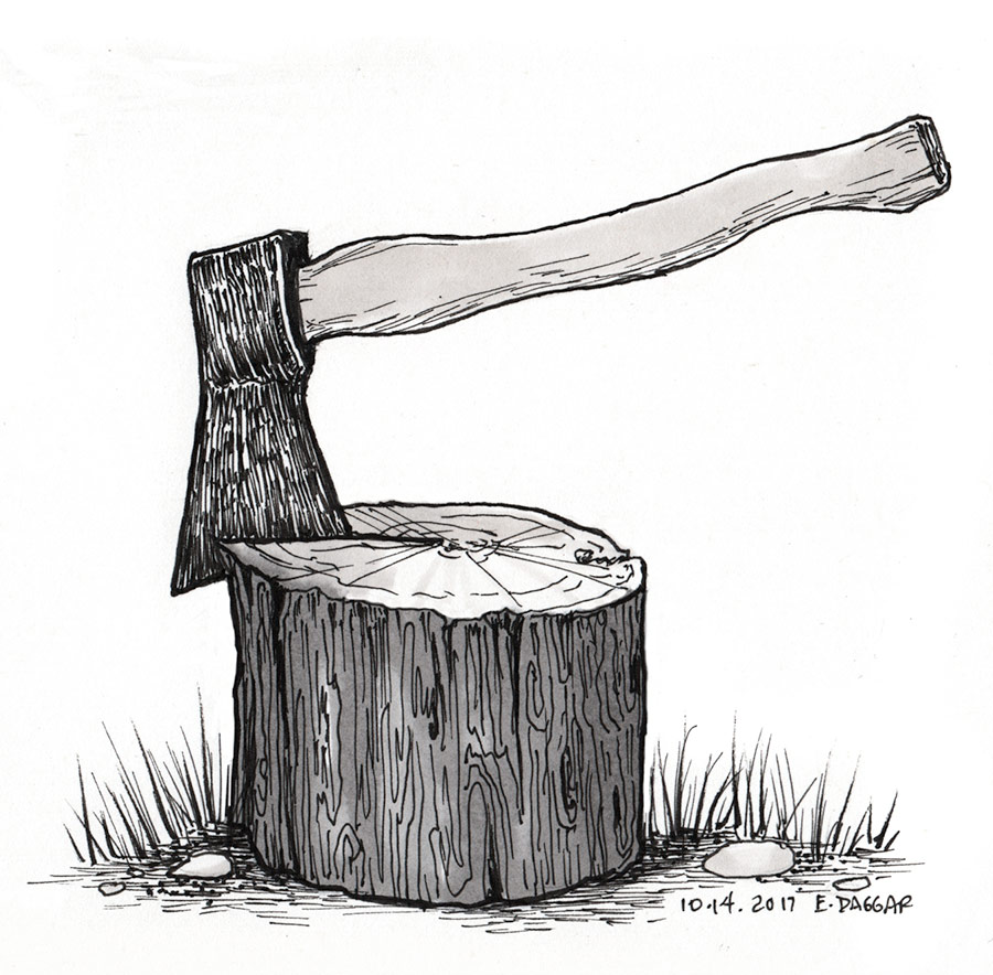 Day fourteen: He chopped the fallen tree into logs, then split them into pieces suitable for the stove. He’d need enough to last the long winter.