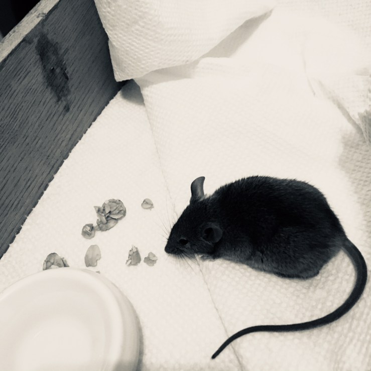 Saturday evening, perhaps twenty minutes before the arrival of some friends, as I sat on the Queen Anne, a shadow shape limped into my peripheral. I said Mouse! And then my tone changed immediately as I saw him slump to a stop on the floor just a few feet from me, and close his eyes. …Mouse?