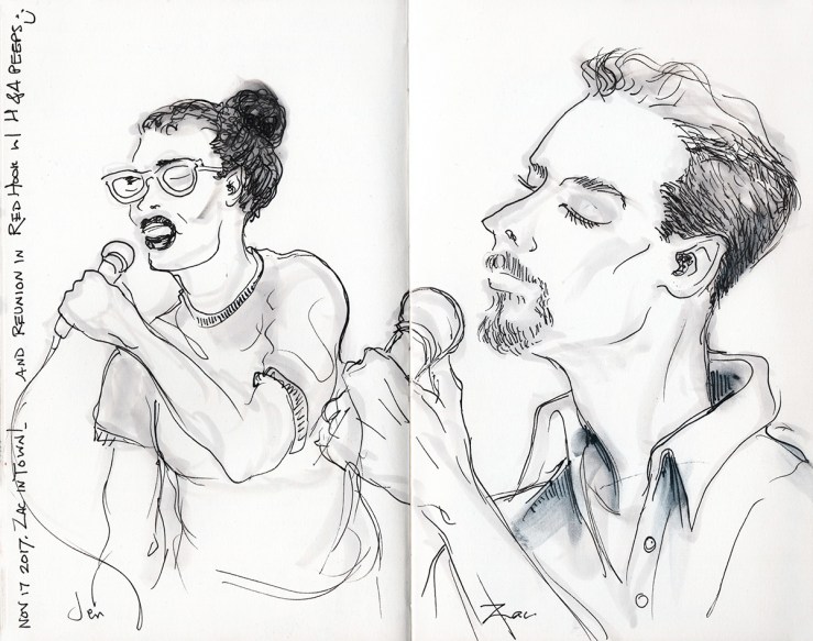 The kids love to karaoke Posted on Monday,20 November, 2017Sunday,19 November, 2017 by edaggarart On a Friday night in Red Hook, a delightful reunion of friends over a swell dinner and lots of singing. (I don’t sing at karaoke, but I sure love listening and drawing.) Share Click to share on X (Opens in new window) X Click to share on Pinterest (Opens in new window) Pinterest More Click to share on Facebook (Opens in new window) Facebook Click to email a link to a friend (Opens in new window) Email Click to share on Tumblr (Opens in new window) Tumblr Click to share on Pocket (Opens in new window) Pocket Like Loading... Related