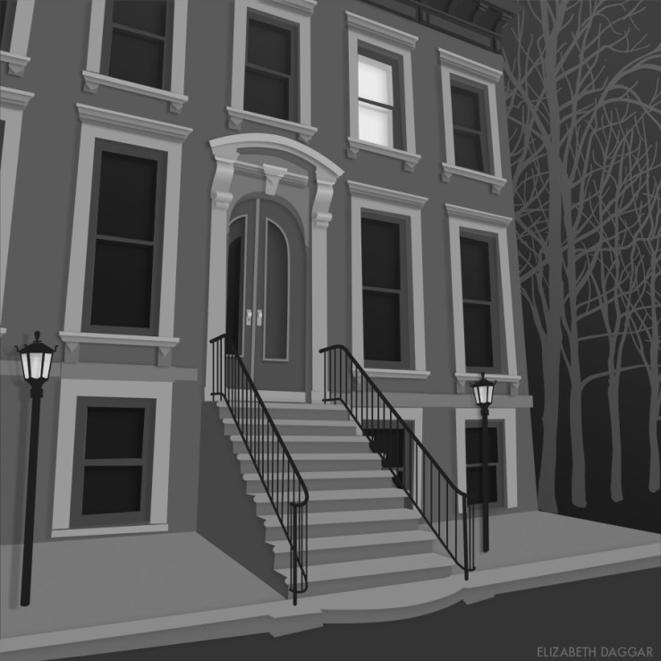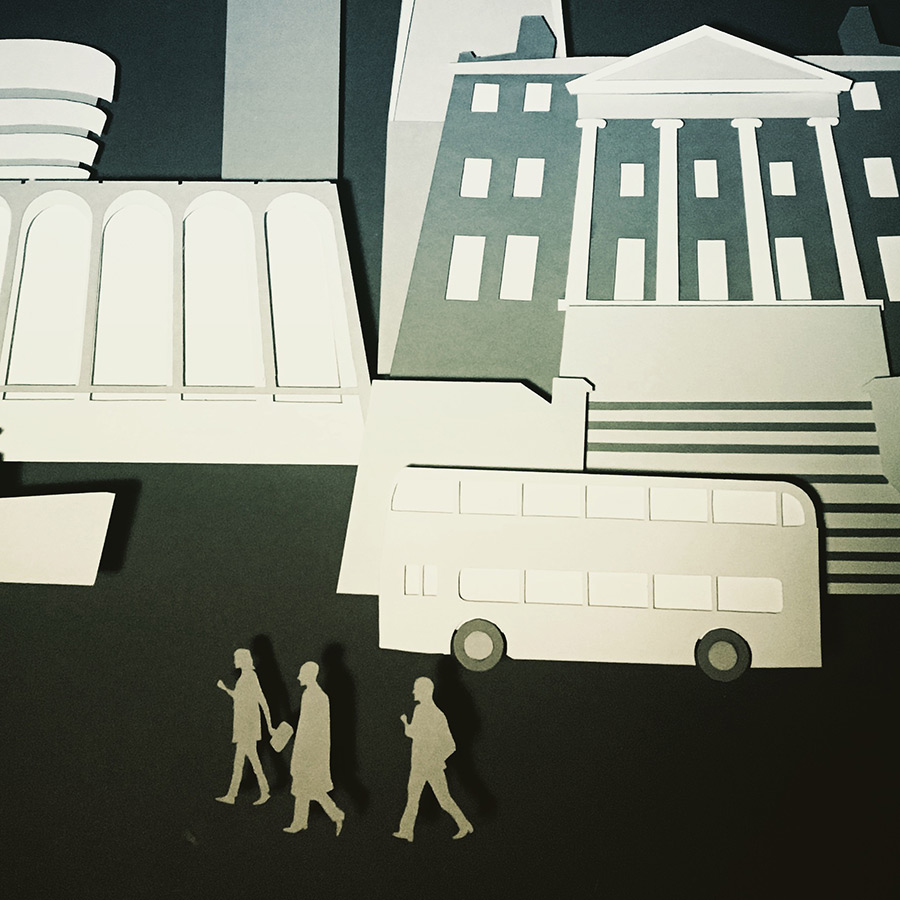 Once again I missed my Thursday post. I was at work late. We were shooting a little set up of cut paper buildings for a campaign, and they reminded me of this illustration I did for a holiday card a few years ago, which has sort of the look of cut paper.