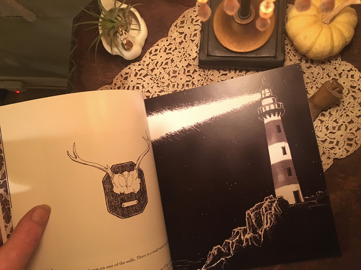 Here are a few photographs I shot of the cover and a couple of spreads in the ol’ Museum (under incandescent, so you can feel like you’re here. It’s cozy here.) to further entice.