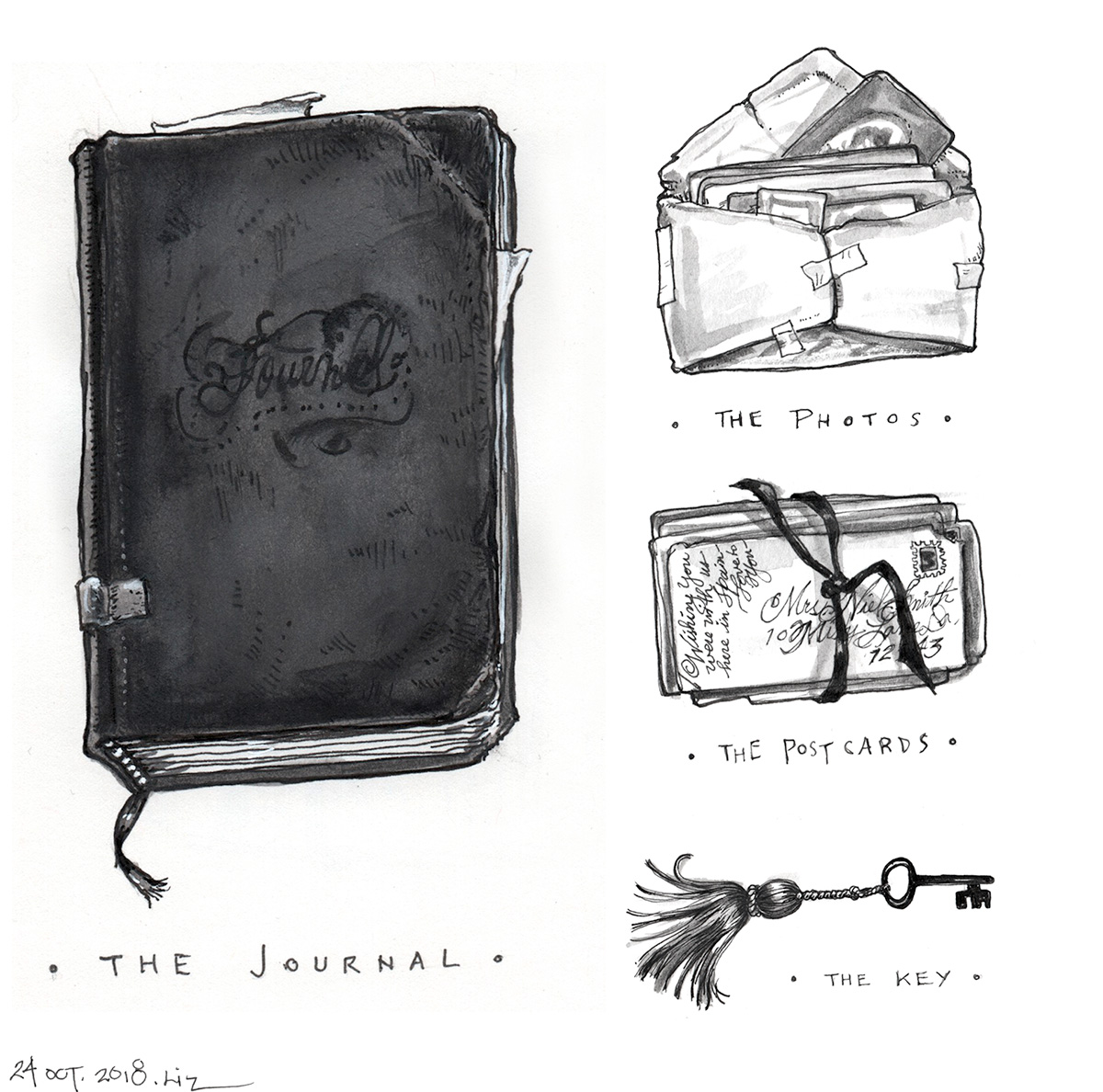 Day twenty-four: When at last she’d completed ministrations to her old-new house in such ways that compelled her, she returned to the leathery old box— a delicious reward. Retrieved from its out-of-the-way place of safe-keeping (much to Cat’s chagrin), she opened it. It contained the following: