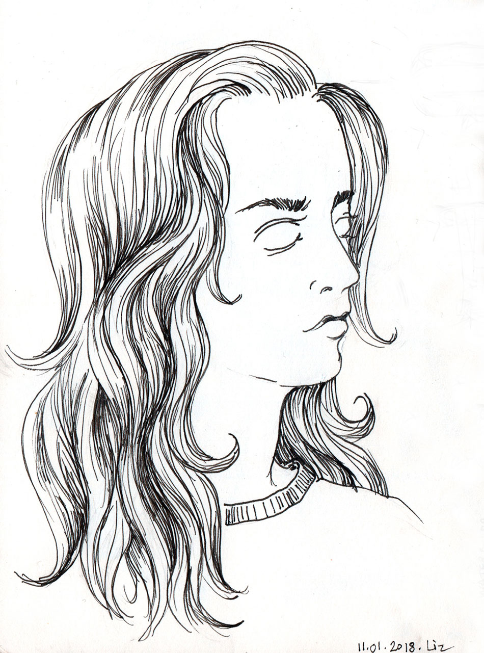 ink drawing of a woman with long hair