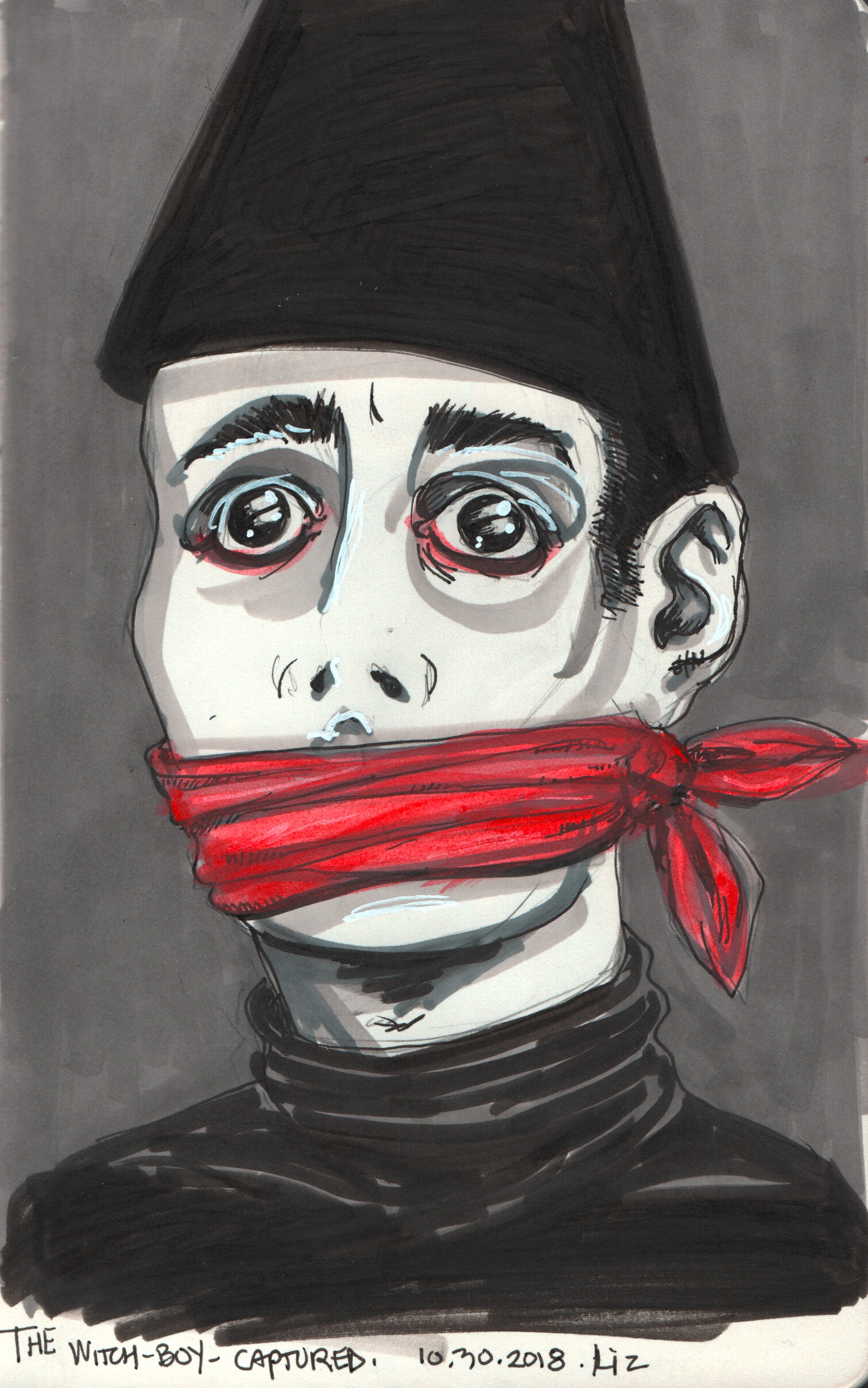 ink drawing of the witch-boy