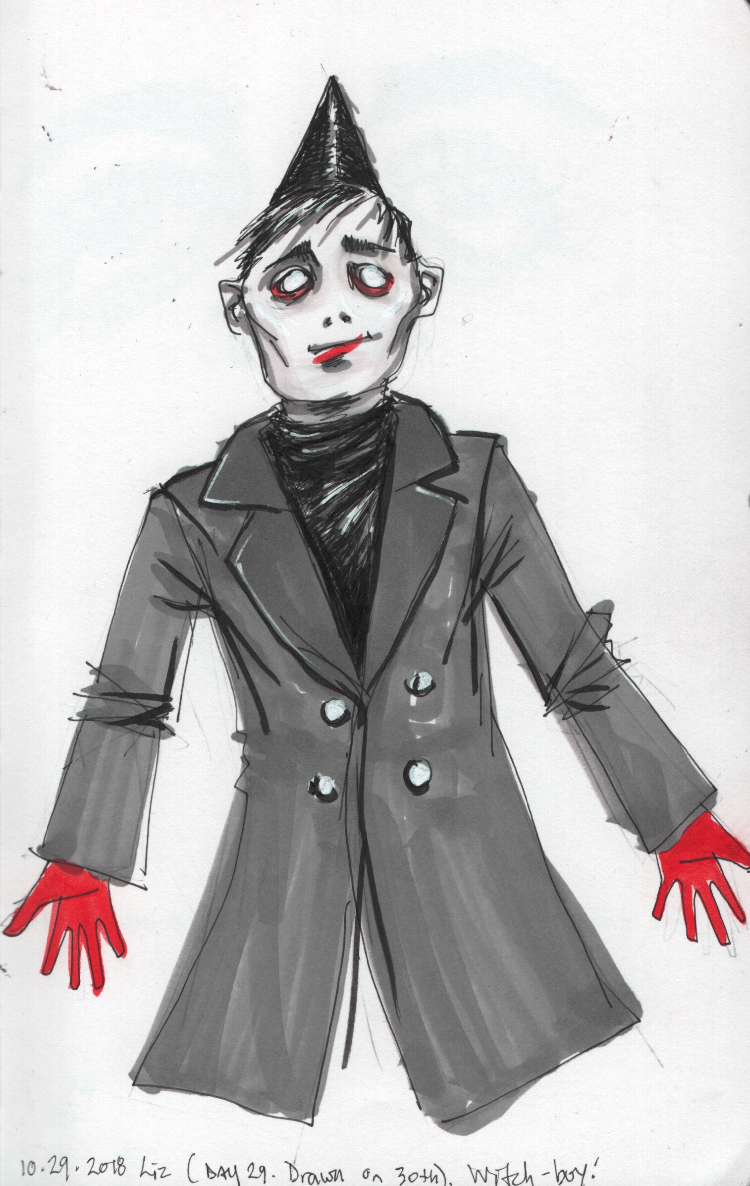 So there totaled three drawings of the witch-boy, leading up to Halloween. The final drawing was just a plain old hair study. Terrifically anticlimactic, honestly. I haven’t even posted that one elsewhere, as I was sort of thinking I might do something else for the 31st ‘official’. But now it’s November third, time to let it go.