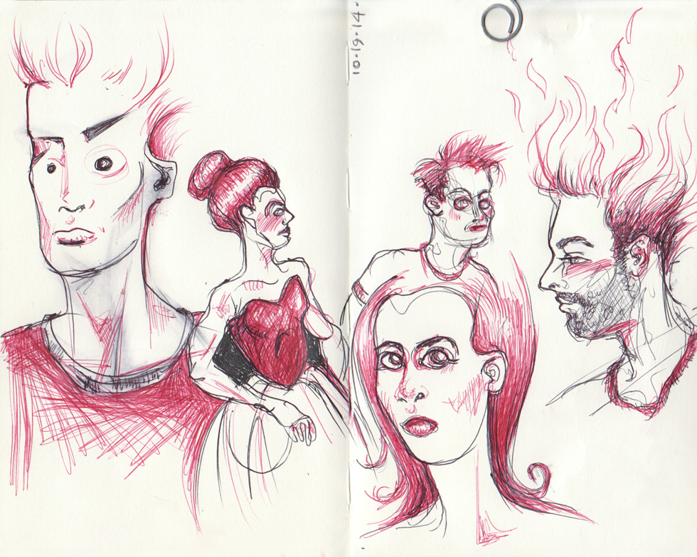 Such a pleasure to step back and people-watch. Divine. Good sketching, there, being invisible— the only way. Momentary moments and dead give-aways; anthropology. (Aside, it appears there's some red ink on my scanner bed— same place each scan. Note to self: time to razor and windex the scanner glass.) More sketchy sketches after the jump.>>… Continue reading Some Moleskine sketches from recent weeks