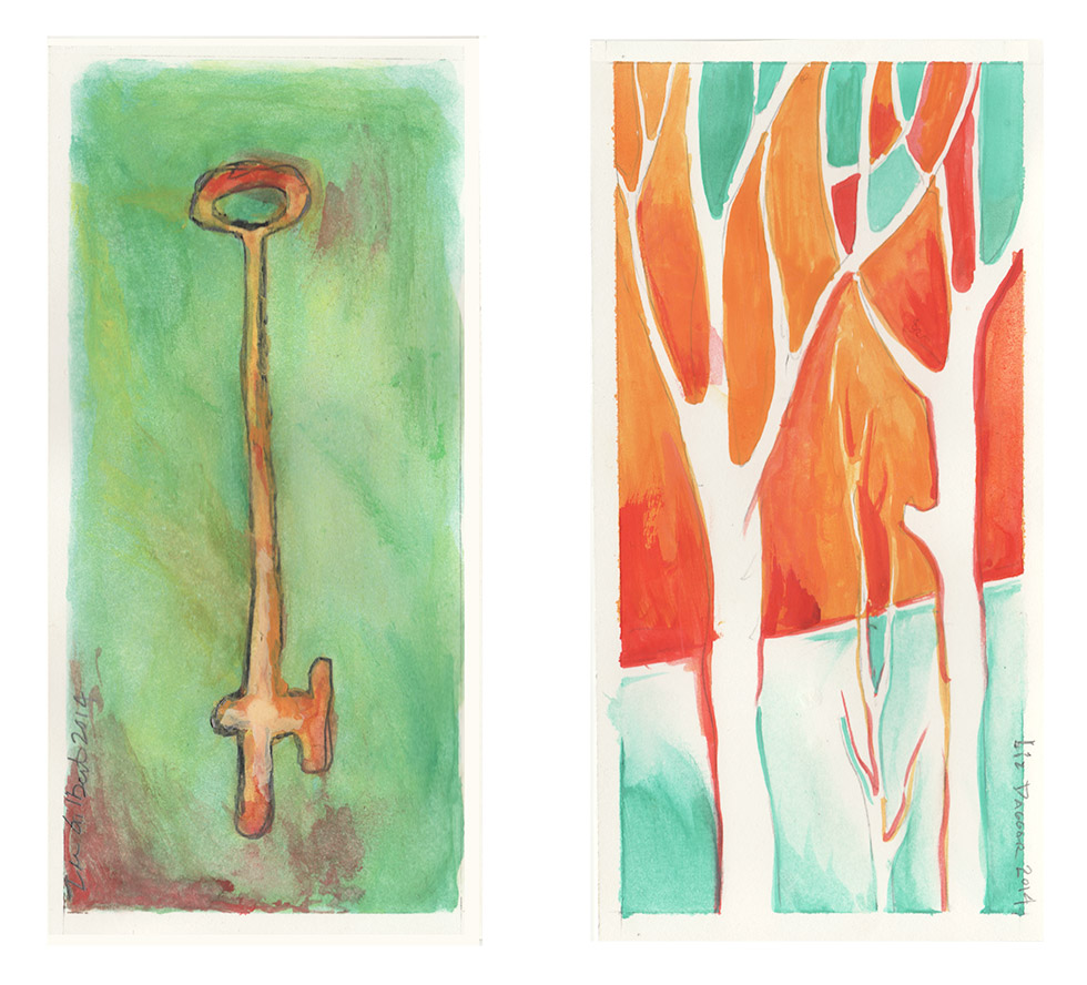 Some impromptu watercolor painting last night— Zac's on the left and mine on the right. We tried to stay in a similar color palette for this diptych. I think they turned out quite well; they have a simple charm. Below is what they look like in the frame.